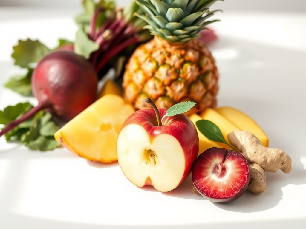 Frutas como maçã, abacaxi e limão são ótimas. Vegetais como cenoura e beterraba também ajudam. Misturar esses ingredientes é uma boa ideia!